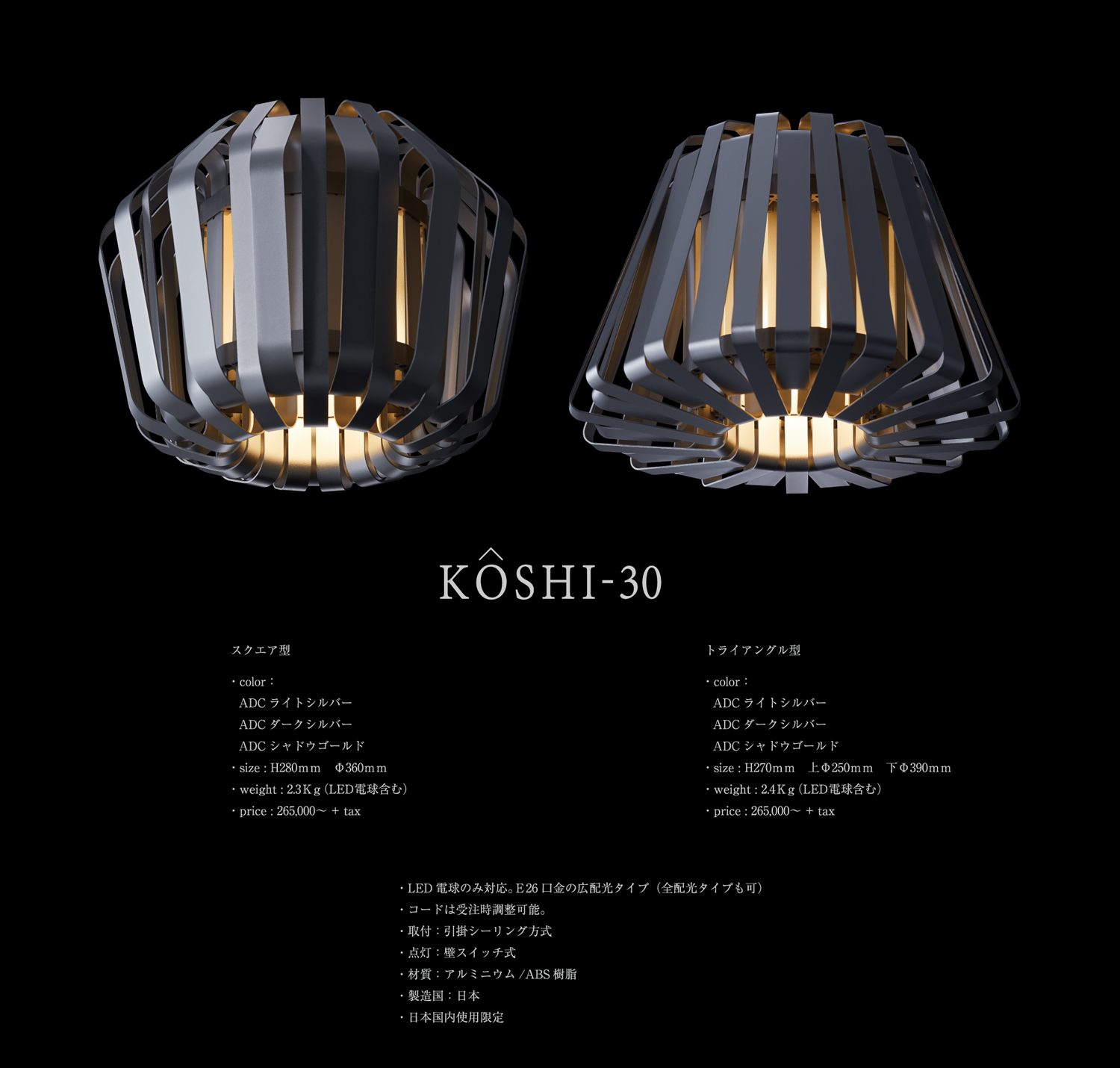 アルミニウムの可能性を追求する「ALMINUM DESIGN CONCEPT」のプロダクトとして生まれたのが、照明「KOSHI-30」です。